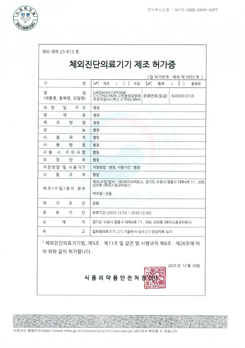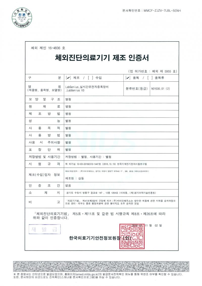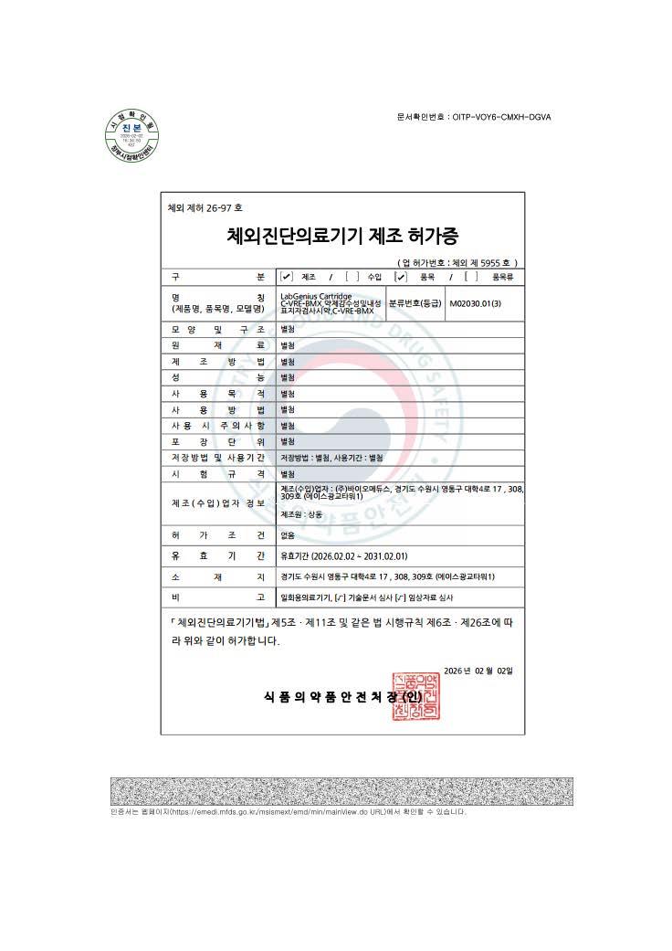 바이오메듀스에서 보유하고 있는 특허증 입니다.